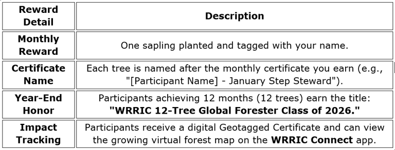 **Late Joining Policy: Participants may join the WRRIC 9,999 Steps Challenge at any time after January 1, 2026. However, all monthly-based rewards (certificates and saplings) are calculated strictly on performance from the 1st day of the calendar month. Participants joining after the 1st day of a month will automatically be ineligible for rewards associated with that specific joining month. Furthermore, qualification for the year-end titles and the exclusive Walk Run Ride In Celebration Season 5 event is based on cumulative monthly consistency starting from January 2026, as specified in the rules. Joining late may impact a participant's ability to achieve full eligibility for year-end recognition.
